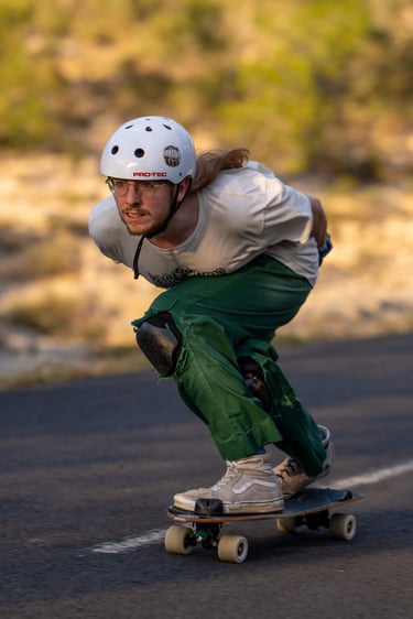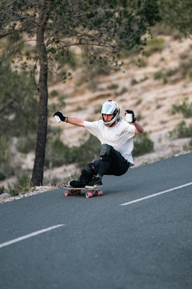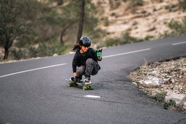 Sur ce blog, j’ai envie de partager avec vous un peu plus que la photographie. Une autre de mes passions depuis plus de dix ans, c’est le downhill skate, aussi appelé longboard. Il existe un spot, caché entre Quissac et Saint-Mathieu-de-Tréviers, où nous nous retrouvons de temps en temps. C’est un lieu idéal : en pleine nature, avec peu de circulation et de nombreuses courbes qui rendent la descente à la fois fluide et technique. Les débutants sont toujours les bienvenus et reçoivent des conseils de tous ceux qui sont passés par les mêmes étapes : apprendre à s’arrêter net, quelle que soit la direction, parfois en pleine épingle, parfois à grande vitesse, et parfois sans poser la main au sol.