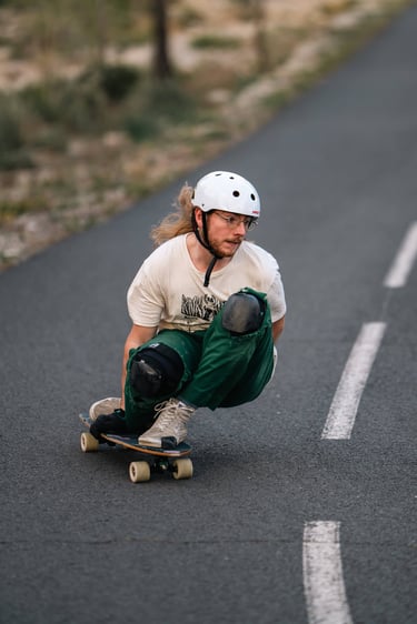 Pour ceux qui souhaitent se joindre à nos sessions (dont nous organiserons davantage au printemps), vous êtes les bienvenus ! Il n'y a aucun frais, il suffit de nous contacter via "Montpellier Wheely Gang". Les débutants sont toujours bien accueillis, et on prend le temps de partager conseils et techniques. La sécurité est une priorité : personne ne skates sans casque et gants, et nous recommandons vivement les crash pants. Beaucoup d'entre nous utilisent aussi des dorsales et des coudières selon les besoins. Si vous n'avez pas encore tout l'équipement, on peut souvent trouver du matériel de rechange ou vous conseiller sur les meilleurs choix. Nos sessions sont aussi l'occasion d'échanger sur le matériel et les améliorations, et il arrive que quelqu'un vende des trucks ou un deck à un prix très avantageux entre amis.